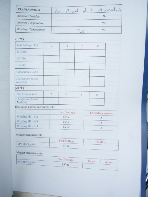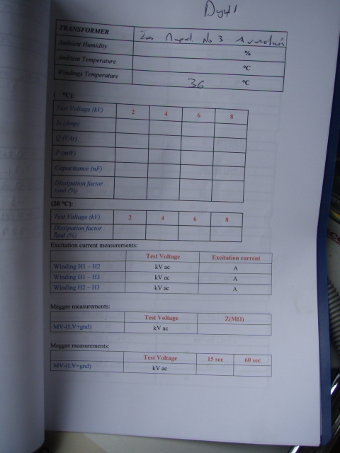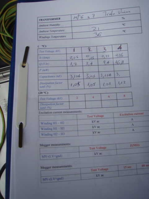 Πραγματοποίηση διηλεκτρικών μετρήσεων (tanδ,R [ΜΩ], PI,DAR κλπ) σε μετασχηματιστές διανομής 6,6kV/500V/3000kVA εργοστασίου τσιμέντων ΑΓΕΤ-ΗΡΑΚΛΗΣ-Lafarge, με τη βοήθεια εξειδικευμένης εταιρείας (ΑΤΕ Αγγελίδης)